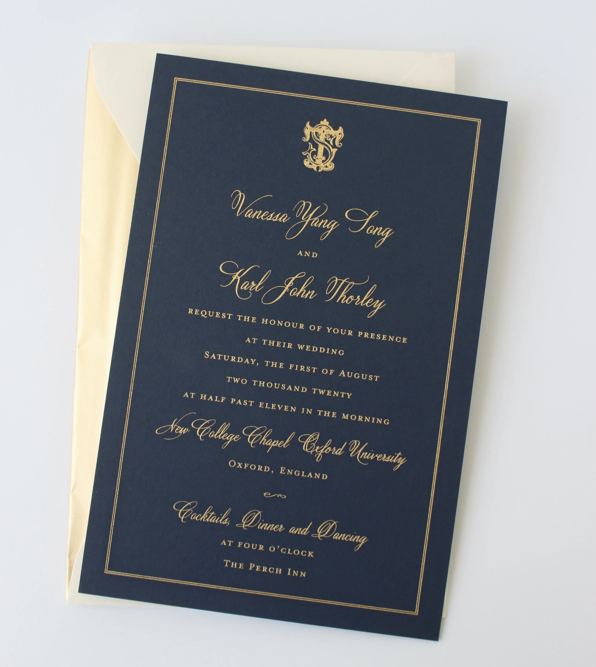 Sage green engraving on white Arturo deckled paper, sage green tissue liner.